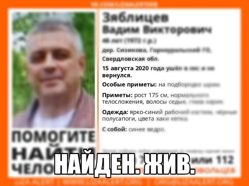 Вадим Зяблицев приехал вместе с семьей на дачу в деревню Сизикова и отправился в ближайший лес за грибами. Когда он не вернулся вовремя, родственники обратились за помощью в полицию и поисковые отряды «Лиза Алерт» и Скорпион».