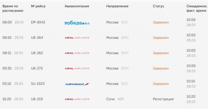 Среди задержанных воздушные судна авиакомпаний «Аэрофлот», «Победа» и «Уральские авиалинии».