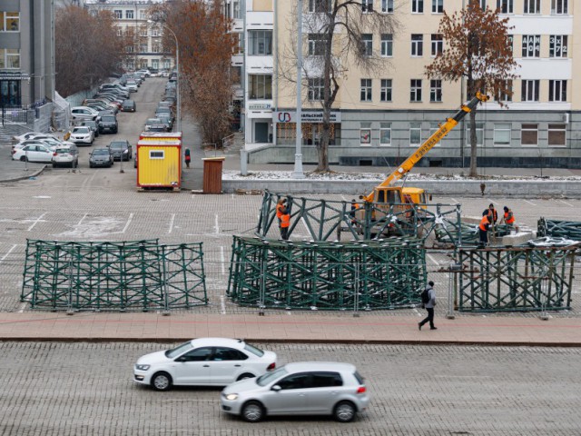 На главной площади Екатеринбурга начали возводить ёлку