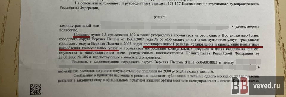 Резолютивная част решения Верхнепышминского суда