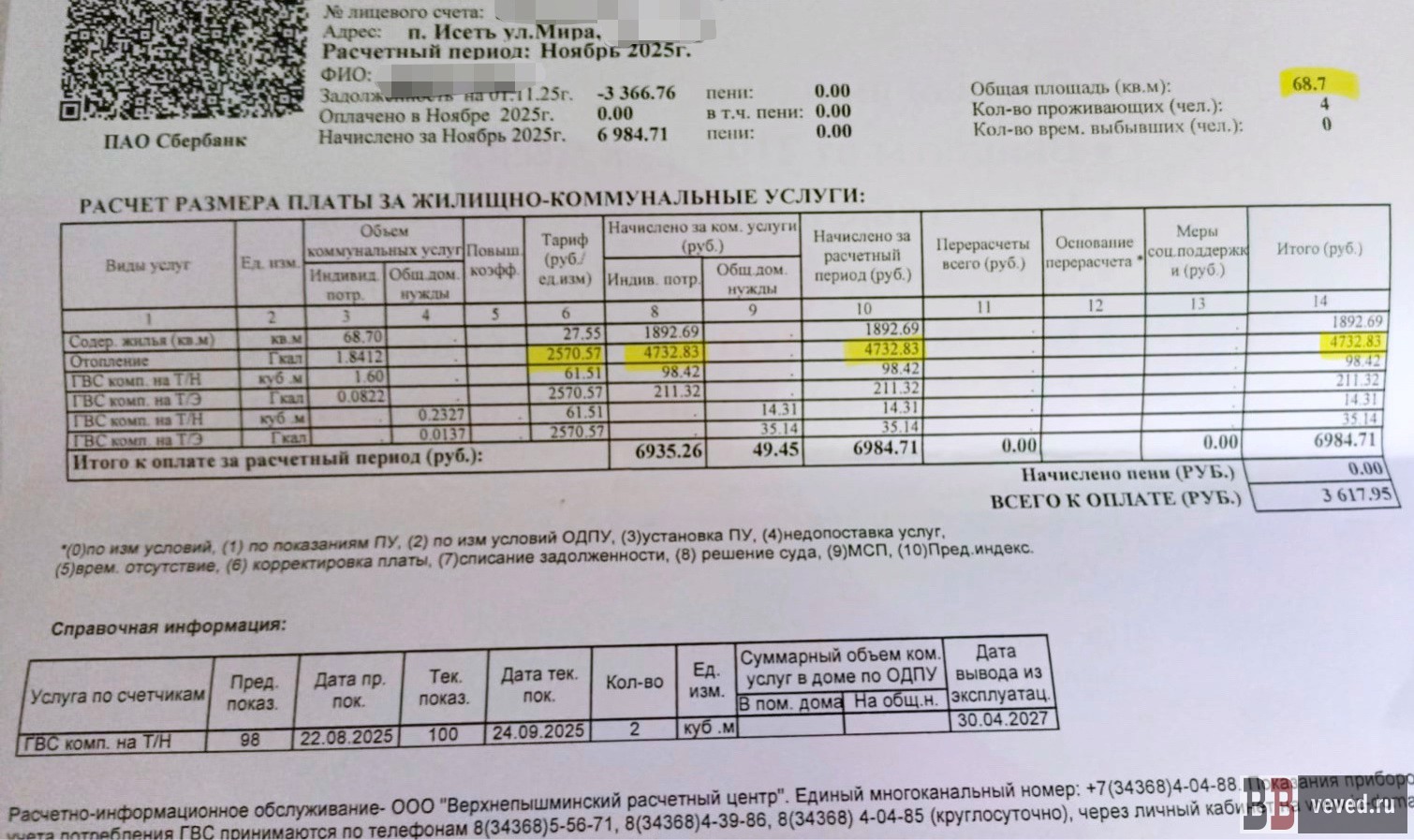 Разница в любом случае вышла ощутимая. Так, например, при расчёте начислений для квартиры площадью 68,7 квадратных метра в ноябре 2025 года норматив рассчитывали следующим образом: 68,7 х 0,038 х 2570,57 = 6711 рубль (97,7 рублей/м²). При перерасчёте вышло на 1978 рубля меньше: 68,7 х 0,0268 х 2570,57 = 4733 рубля (68,9 рублей /м²).