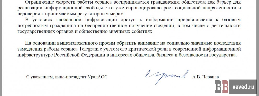 Уральская ассоциация операторов связи (УралАОС) направила председателю российского правительства открытое письмо, в котором указала на негативные последствия ограничения мессенджера Telegram в России.