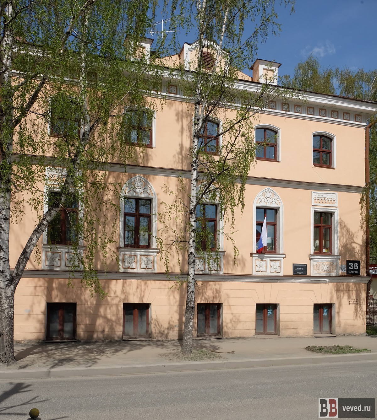 Здание на улице Кирова (бывшей Проезжей) — одно из немногих сохранившихся каменных строений исторического посёлка Верх-Исетского завода. Возведено во второй половине XIX века: в технической документации датой начала эксплуатации указан 1860 год. Впрочем,по архитектуре здание больше похоже на постройку рубежа XIX-XX веков. Двухэтажный особняк площадью 874,2 м² с усадебным комплексом, включавшим каменный флигель и ограду, обращает на себя внимание нехарактерным для архитектуры ВИЗа фасадным декором — «готическими» мотивами в сочетании с приёмами эклектики: карнизами с триглифами и метопами, стрельчатыми арками оконных проёмов второго этажа, штукатурными наличниками и лепным растительным орнаментом. Под госохрану здание поставлено в 2001 году.