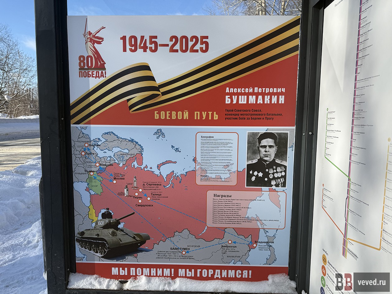Эксперты Народного фронта создали аудиофайлы с краткой информацией о заслугах героев - участников Великой Отечественной войны, великих российских полководцев и легендарных земляков, имена которых носят остановки. Аудиофайлы транслируются в пермском общественном транспорте с апреля 2025 года.